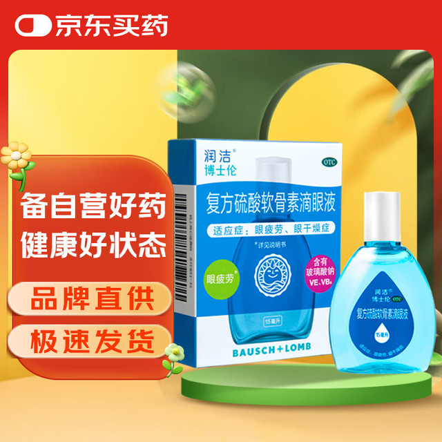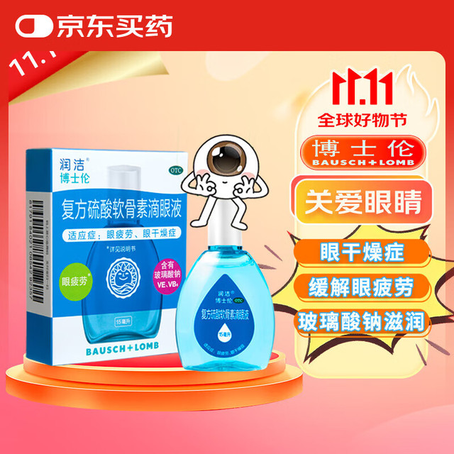 润洁 博士伦润洁复方硫酸软骨素滴眼液15ml 缓解眼疲劳 眼干燥眼药水