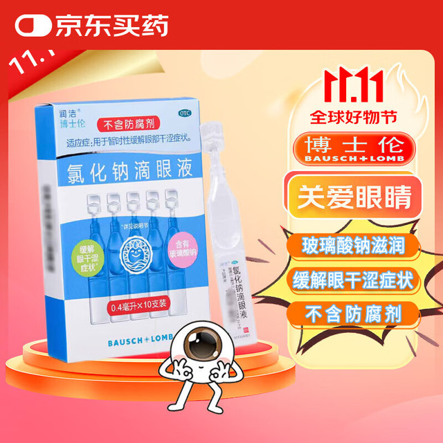 润洁 氯化钠滴眼液10支 博士伦 眼药水用于暂时性缓解眼部干涩症状