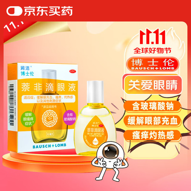 润洁 萘非滴眼液 博士伦 黄润洁 10ml 眼药水 缓解眼睛充血 润眼液 眼瘙痒 缓解疲劳眼干眼涩
