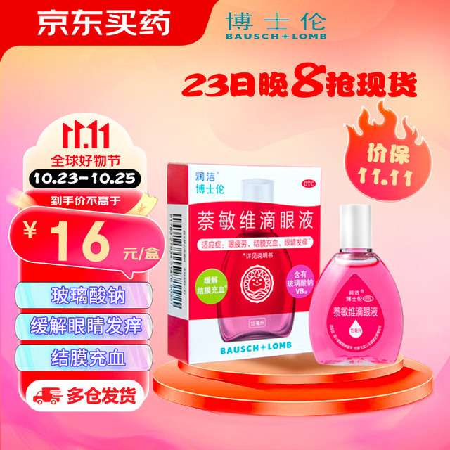 移动端、京东百亿补贴:润洁 萘敏维滴眼液15ml 结膜充血 眼睛发痒 润眼液 缓解疲劳眼干眼涩 眼药水 1盒装