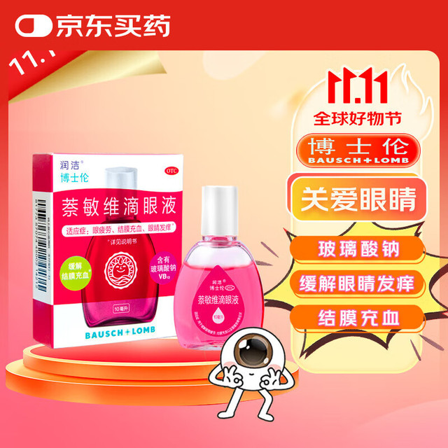 润洁 博士伦 润洁萘敏维滴眼液 10ml 眼疲劳 结膜充血 眼睛发痒 眼药水