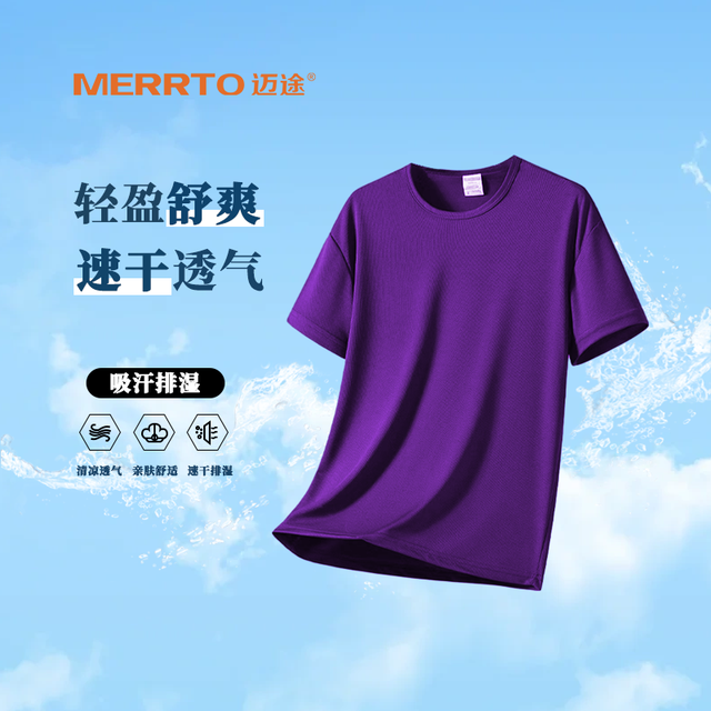 迈途 MERRTO 速干T恤男士夏季男装透气运动上衣男速干衣跑步短袖I 21-紫色 2XL9.9元(需买2件,共19.8元)