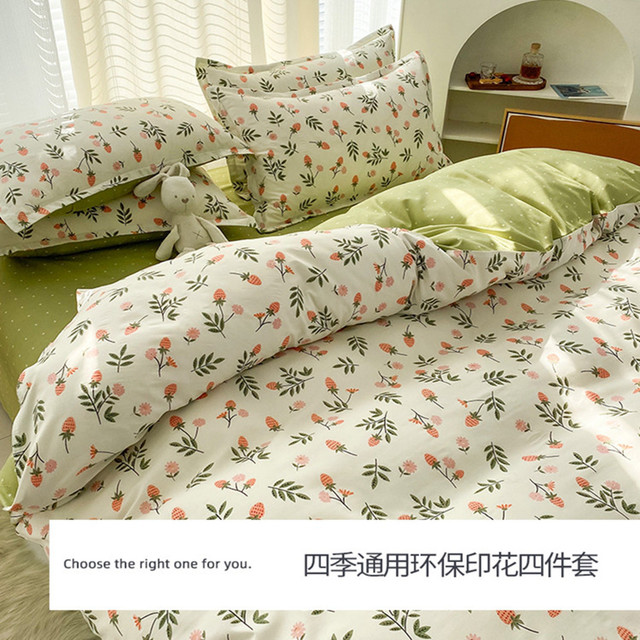 TIANXUAN 天绚家居 小清新印花亲肤舒适四件套床单被套学生宿舍多件套四季款床上用品
