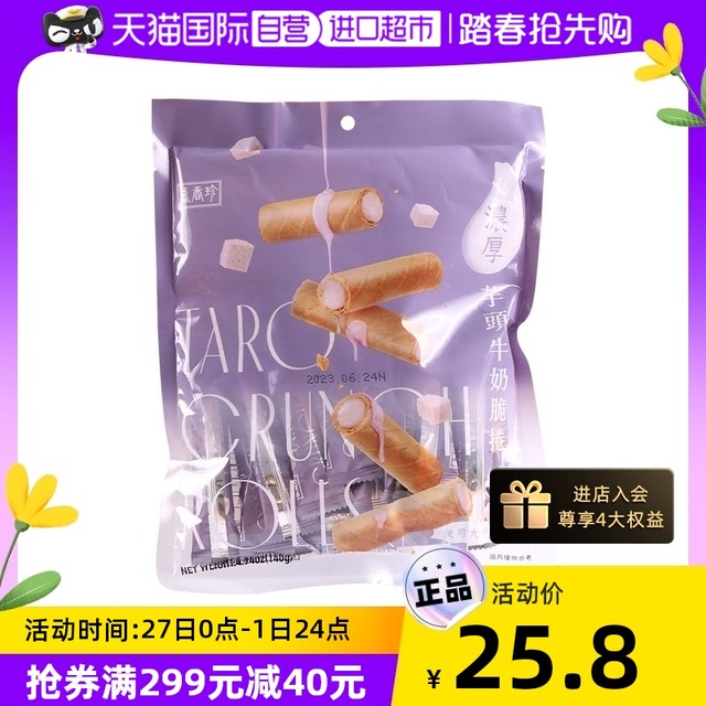 该价格商品规格:口味:芋头牛奶味脆卷140g一包约21个)天猫商城该商品参加1件9.5折、售价立减2.7的促销活动,当前到手价22.90元,降价前售价为25....