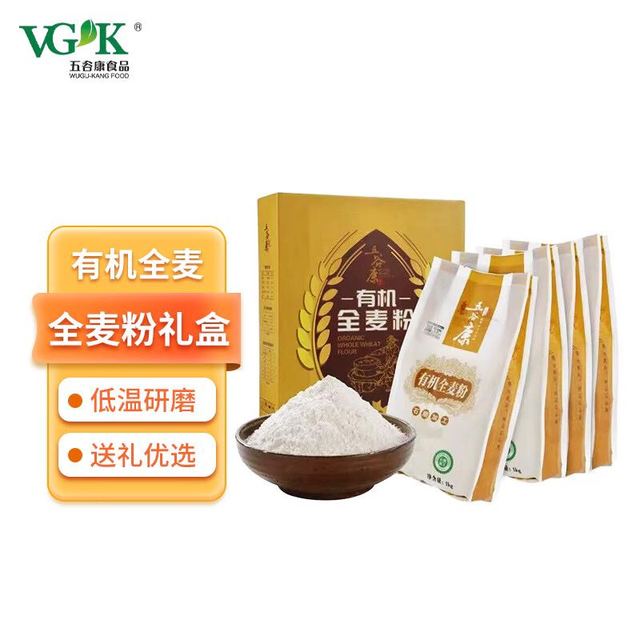 五谷康 食品 有机石磨全麦粉4000g礼盒装 多用途家用烘焙通用优质原料97.87元(需买3件,共293.61元)