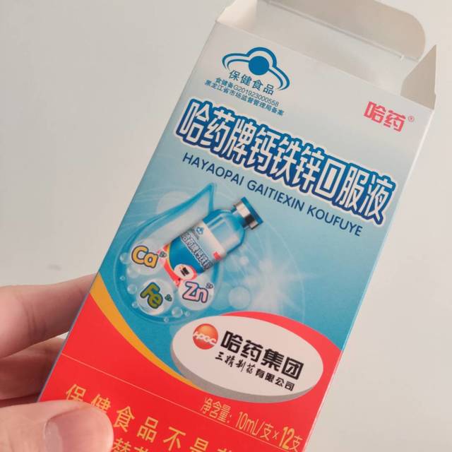 哈药牌钙铁锌口服液,从小看到大的广告牌子。保健食品老品牌,专为儿童研制的钙铁锌蓝瓶装。哈药集团出品,三精制药有限公司生产。蓝瓶的,认准哈药牌三精制药。一盒12支...