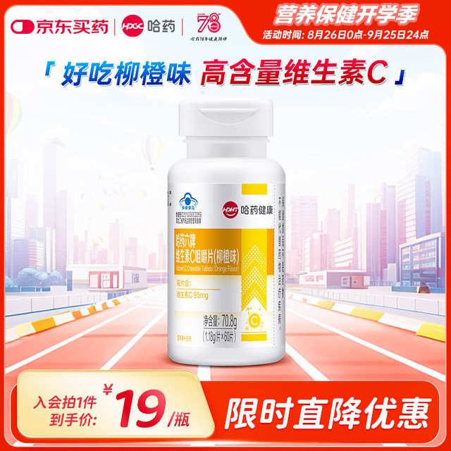 哈药牌 哈药六厂 维生素C咀嚼片60片 柳橙味VC 1瓶