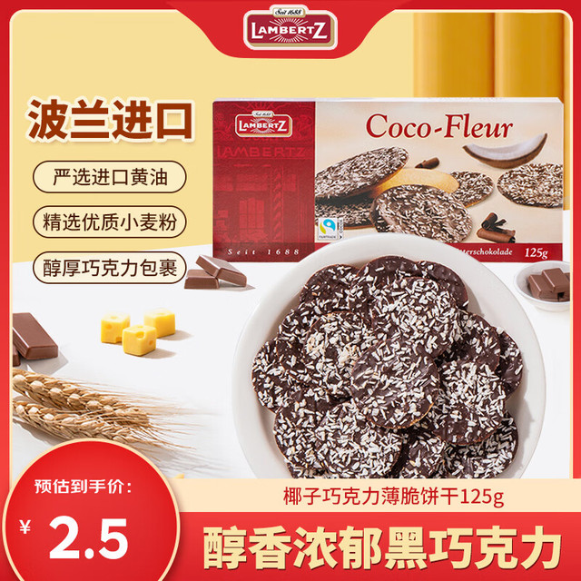 LAMBERTZ 椰子巧克力薄脆饼干 125g 1袋