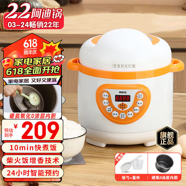 Luby 洛贝 LBA-2EPM03阿迪锅高压锅 2L迷你电压力锅小1-2人 白橙色175.67元(需买3件,共527.01元)