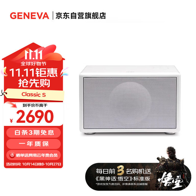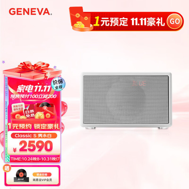 GENEVA 日内瓦之声 吉年瓦兰 (Geneva)日内瓦之声Classic S蓝牙立体声音响家用多功能收音机复古木质桌面音箱 俊永白3090元(需用券)
