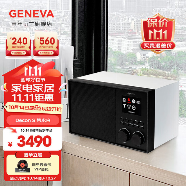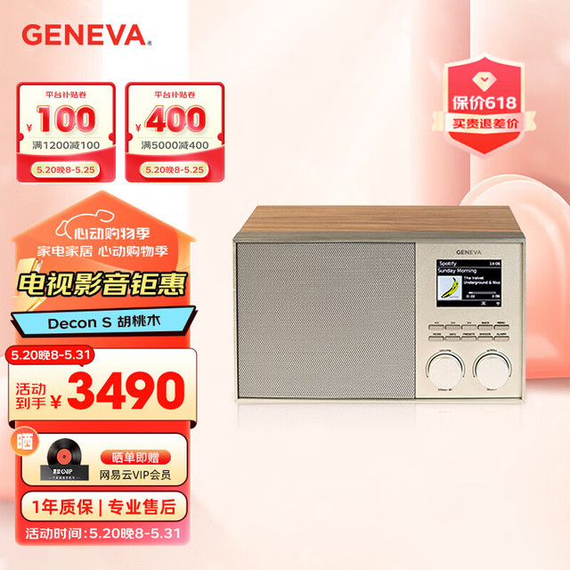 GENEVA 日内瓦之声 吉年瓦兰(Geneva)日内瓦之声Decon S蓝牙立体声HiFi音响多功能收音机音响家用桌面3250元(需用券)