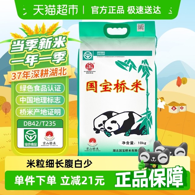 国宝桥米 京山大米10kg(当季新米) 煲仔饭米 籼米 油粘香软米 熊猫