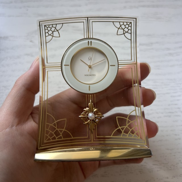 这款MIKIMOTO钟!通透机身和金色花纹超搭,简约白盘显气质,珍珠镶在金色底托上,精致又贵气,谁看都喜欢~日淘买的到货很快#日淘市集 #煤炉代切