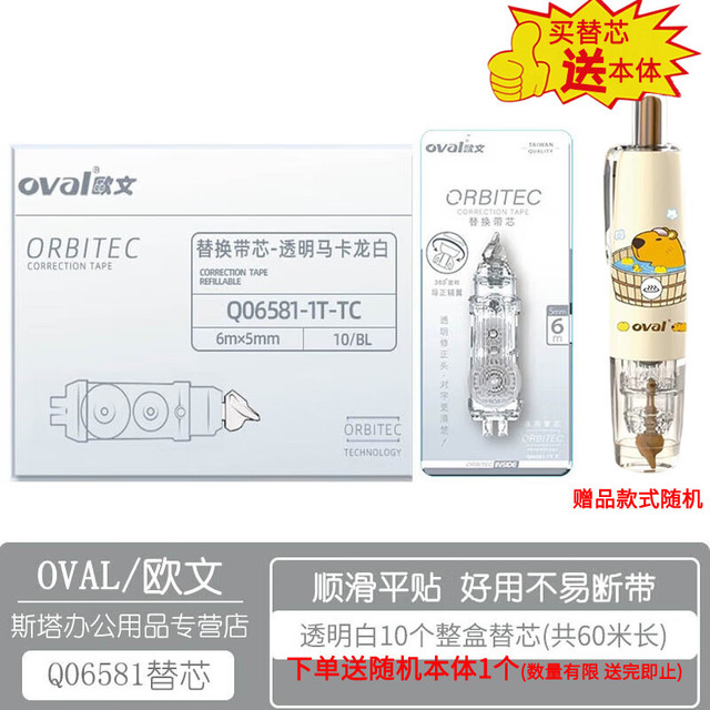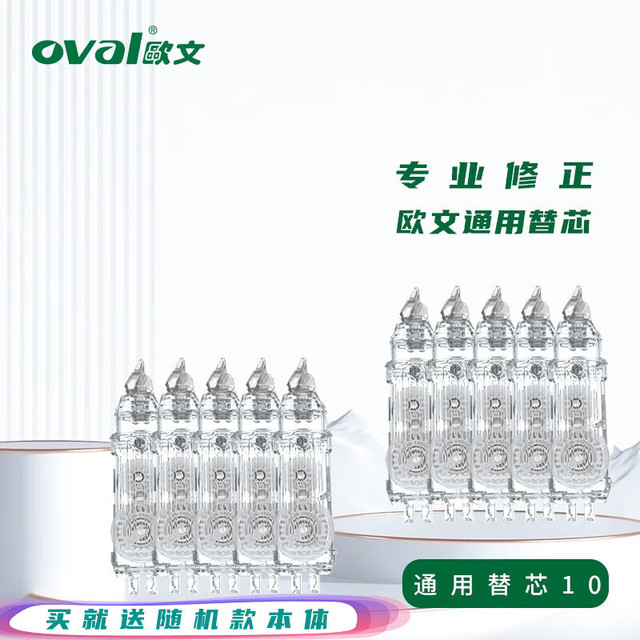 OVAL欧文修正带替芯 女生雾感限定款笔形涂改带替换芯 大容量中小学男生用可爱按动式改正带 透明白色替芯 10个整盒装