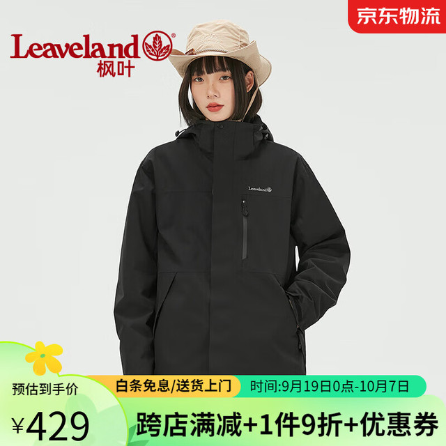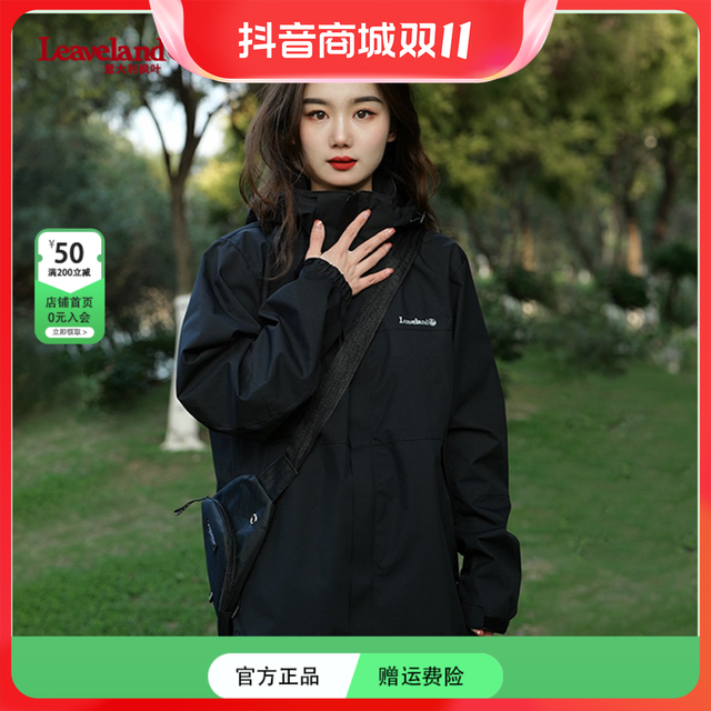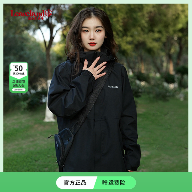 Leaveland 枫叶 冲锋衣男女士三合一外套春秋季可拆防风防水情侣夹克