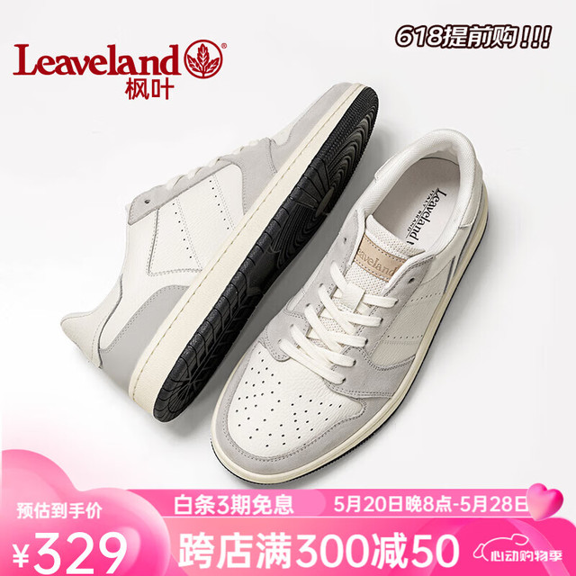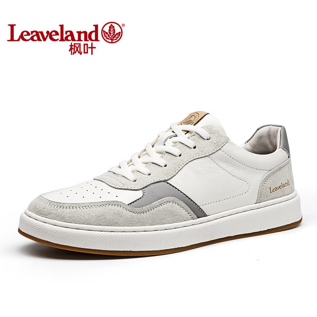 Leaveland 枫叶 男鞋舒适休闲板鞋男女同款空军一号时尚都市软底休闲鞋 白/灰 39