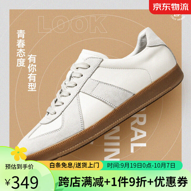 枫叶(leaveland)意大利男鞋2023新品真牛皮复古情侣款德训鞋户外男士运动休闲板鞋
