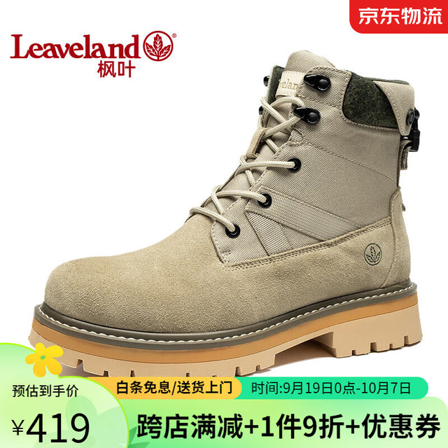 Leaveland 枫叶 男靴秋冬季新品马丁靴百搭工装靴时尚男鞋皮靴子 沙色 44 尺码偏大