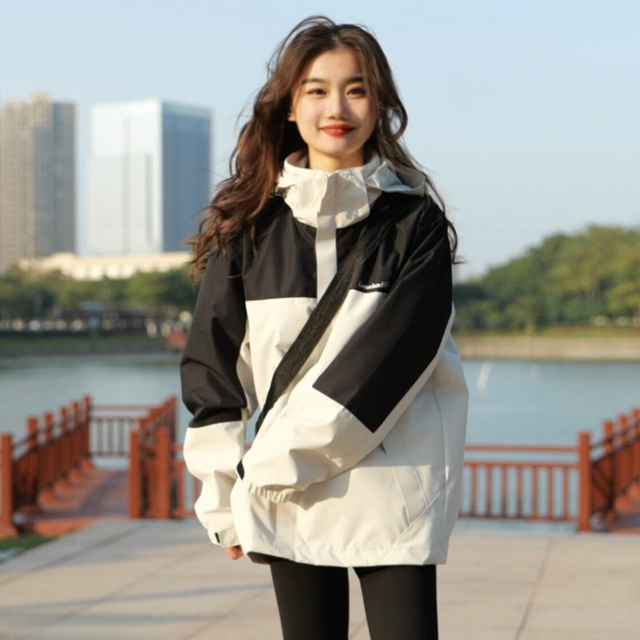 抖音超值购:Leaveland 枫叶 春季新款户外冲锋外套情侣同款拼色风衣夹克23885