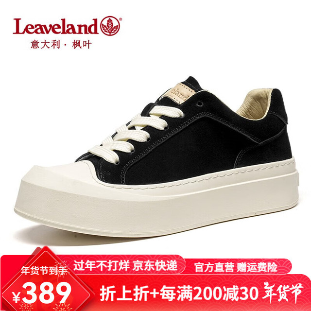 枫叶(leaveland)男鞋2024秋冬新品简约百搭厚底贝壳头饼干鞋增高软底休闲板鞋子男