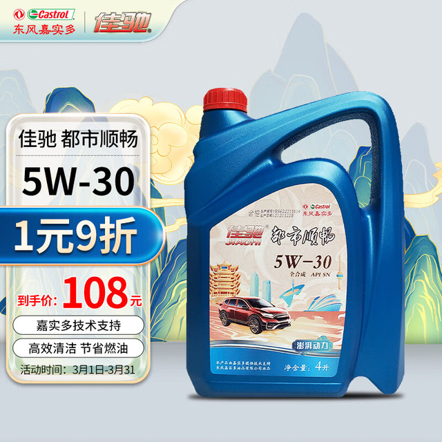 有券的上:JIACHI 佳驰 国潮 全合成机油 SP级 A3/B4 5W-30 4L装