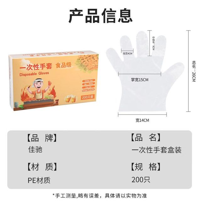 有券的上:JIACHI 佳驰 一次性手套200只 加厚防漏卫生手套食品用厨房餐桌野餐塑料手套