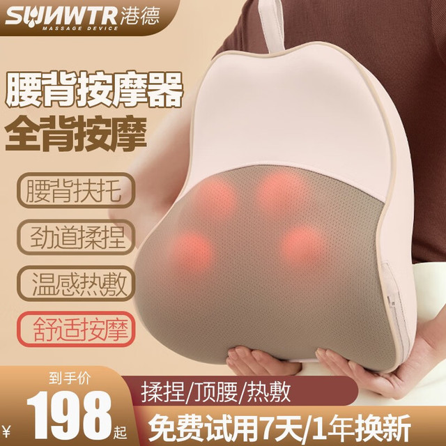 港德 SUNWTR)腰背揉捏按摩器背部腰椎按摩靠垫 家用办公室后背按摩仪 咖啡色