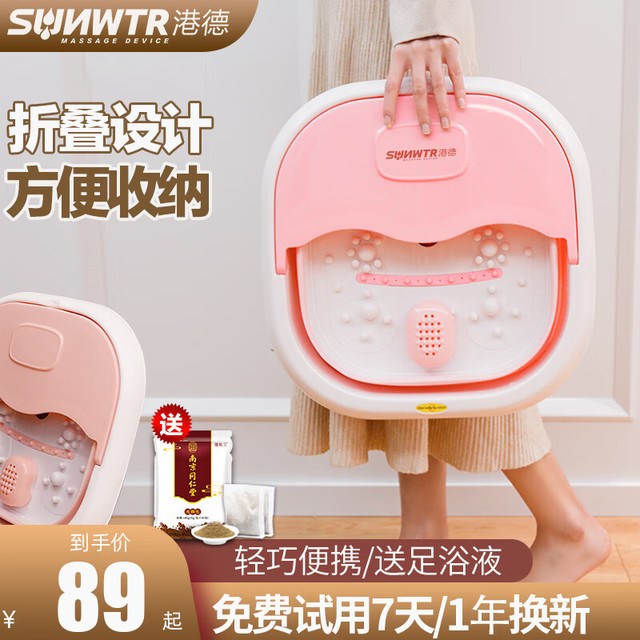 港德 泡脚桶折叠足浴盆按摩家用洗脚盆电加热泡脚盆 粉色