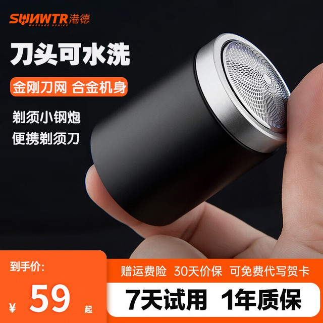 港德 SUNWTR)小钢炮剃须刀电动男士迷你便携刮胡刀 旋转六叶刀头