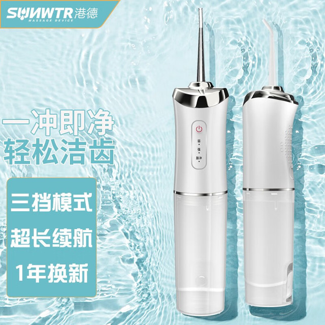 港德 冲牙器洗牙器水牙线电动便携 白色标准款(1个喷嘴)