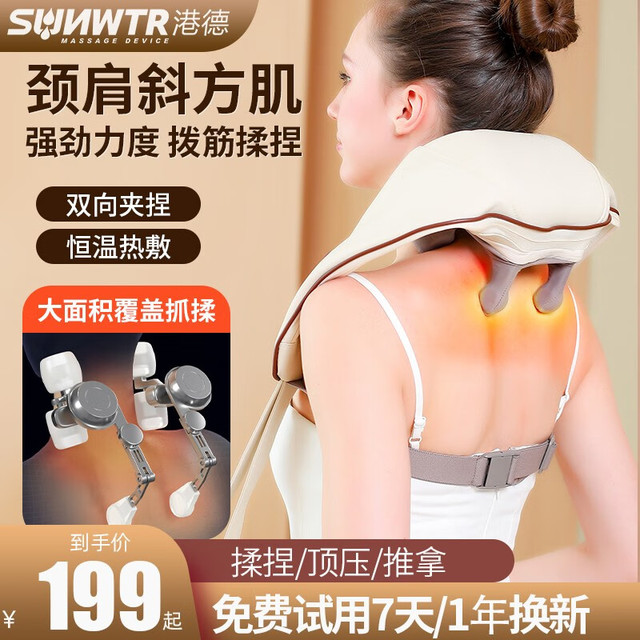 港德 SUNWTR)颈椎按摩器 肩颈揉捏按摩仪 (揉捏+热敷+便携充电款)
