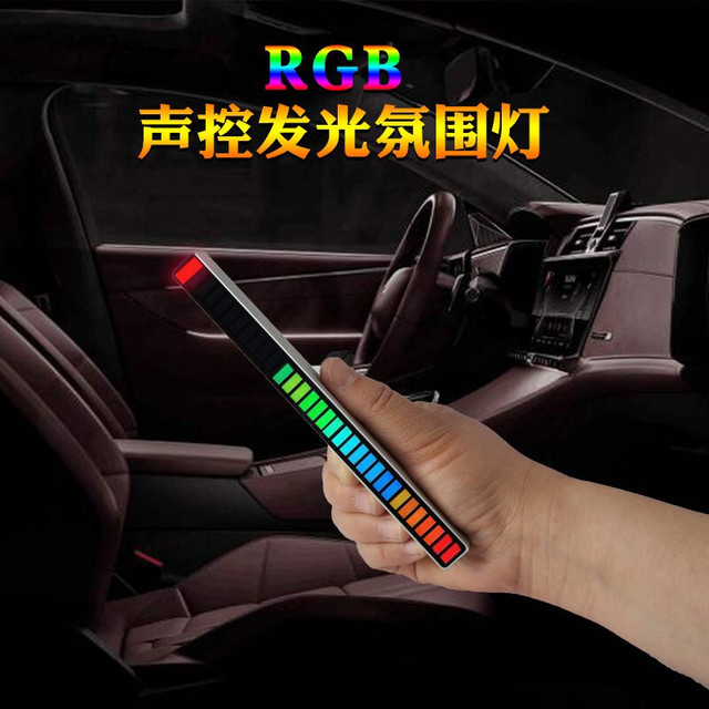爱源尚 拾音灯rgb声控拾音节奏灯车载氛围灯条桌面光污染音乐频谱灯感应音箱led车载声控拾音灯炫彩灯音乐控制 RGB氛围灯32颗灯珠-1只装(带车充)