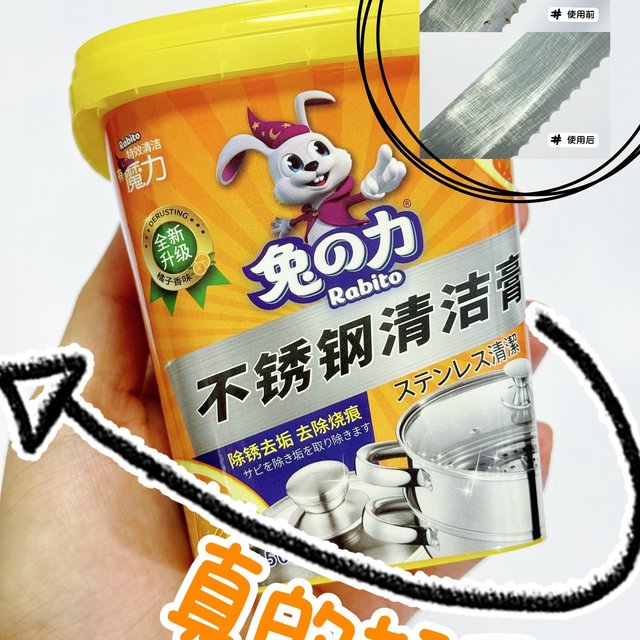 #我的解压清洁时刻 以前清理焦糊的不锈钢锅总让人崩溃,直到遇见兔力不锈钢清洁膏,打扫厨房竟成了我的解压时光。 它质地细腻,不用费力搓洗,沾点水轻轻擦拭,锅底的黄...