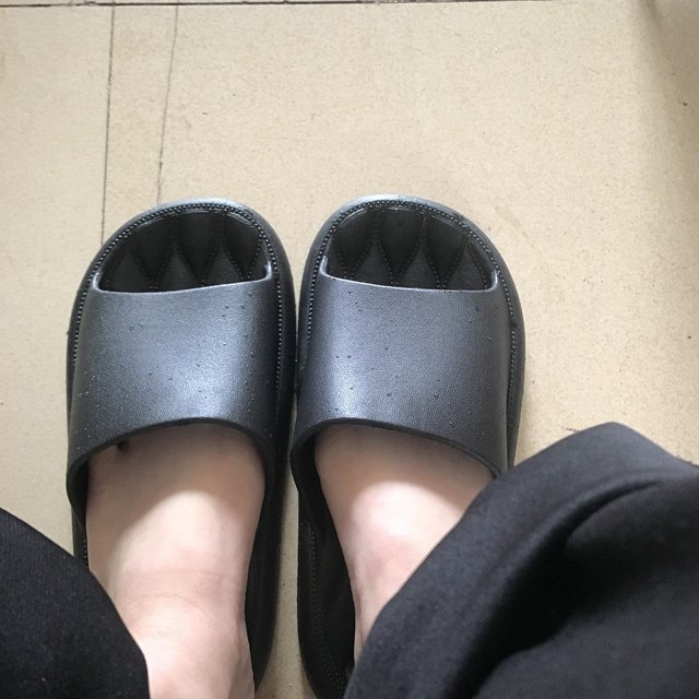 收到货了 做工挺不错的 鞋子低是软软的那种 穿起来不会难受 很纳摩洗澡的时候也不会很滑 也很轻便质量不错 大小也合适 黑色的不容易脏 颜值很好很喜欢 推荐购买哟...