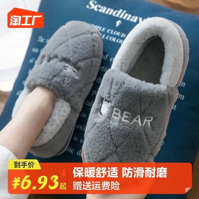 风踏 棉拖鞋男士冬季包跟2023新款室内家居防滑厚底加绒保暖毛绒棉鞋男