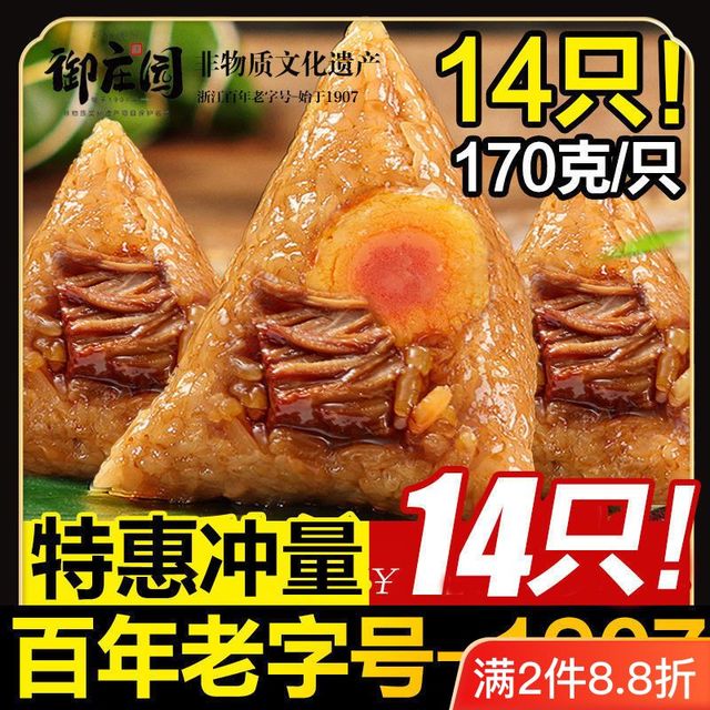 御庄园 嘉兴粽子大肉粽子蛋黄鲜肉粽6-15只*170克早餐棕子蜜枣豆沙14.9元(需用券)