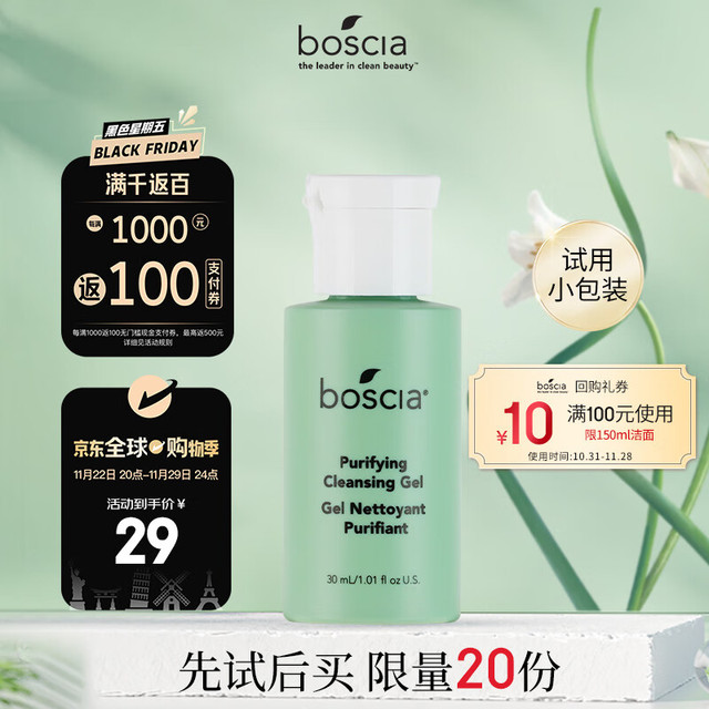 boscia 博倩叶 氨基酸洁面啫喱30ml 温和舒缓敏感清洁植物养肤泡沫洗面奶