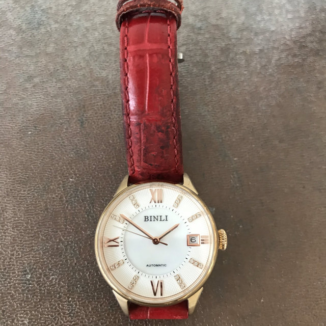 老公给买的这款手表虽然是个小众品牌,但外表出众,内在也不赖。表带按钮式设计佩戴起来很方便。