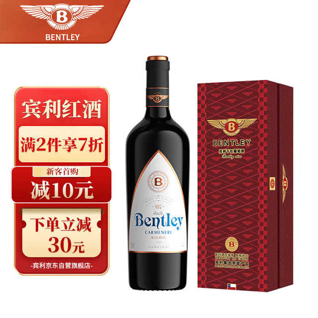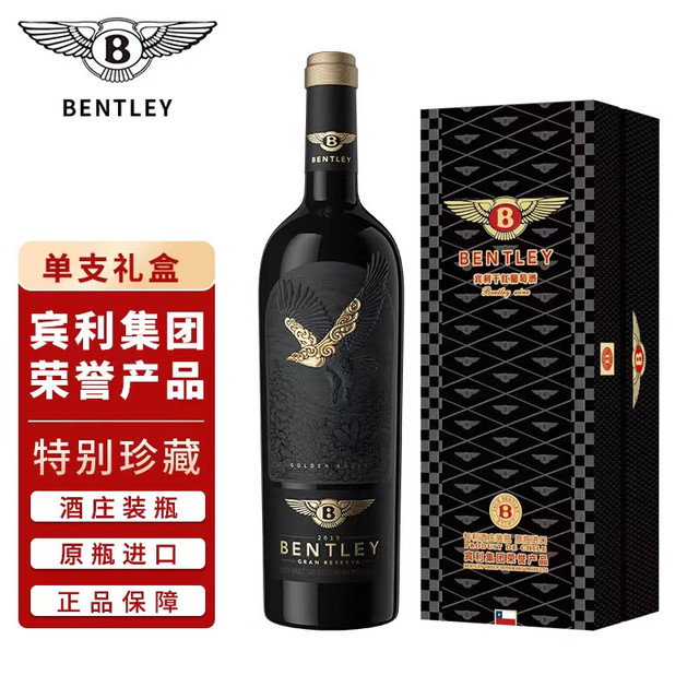 PLUS会员:BINLI 宾利 BENTLEY)智利原瓶进口红酒 礼盒 单支
