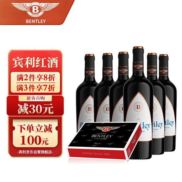 移动端、京东百亿补贴:BINLI 宾利 BENTLEY)智利原瓶红酒干红葡萄酒爵卡407珍藏级自饮红酒礼盒整箱