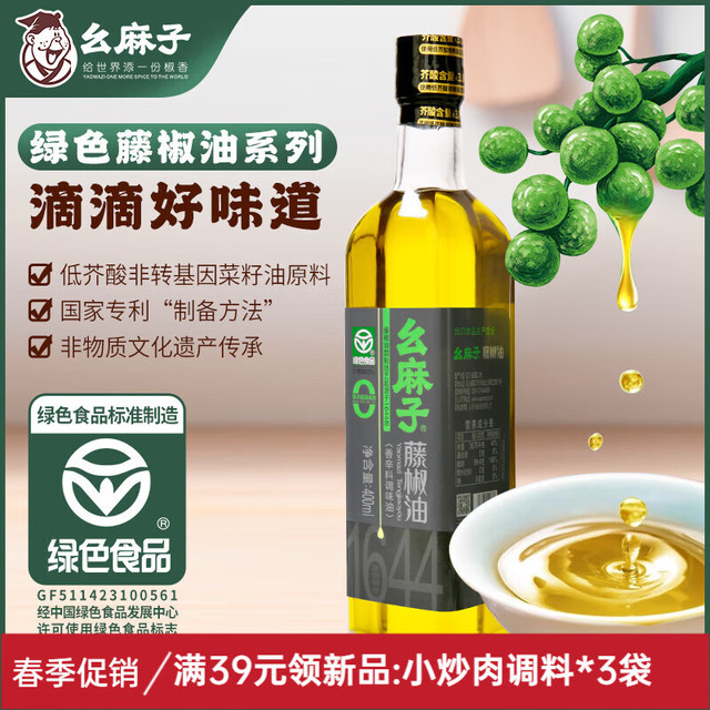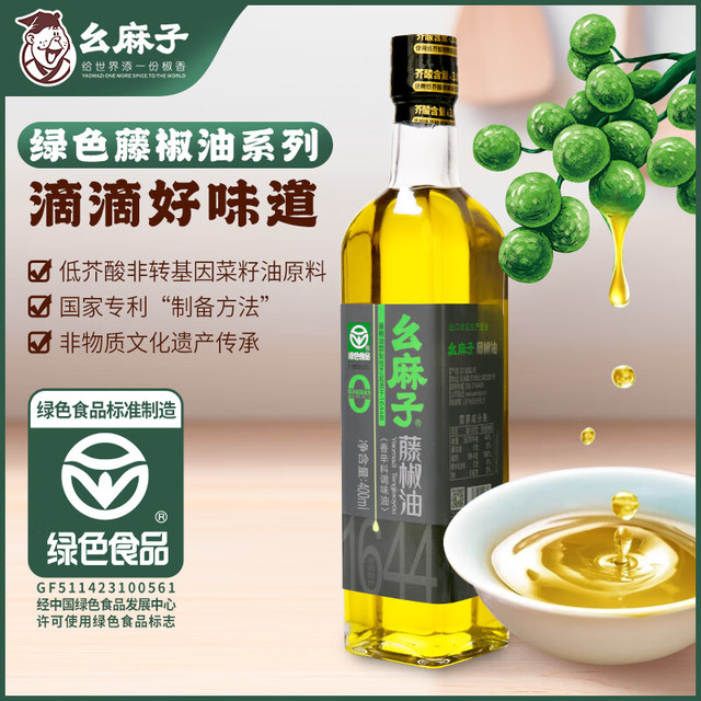 幺麻子这款藤椒油,产自四川省眉山市。选用自主培育的藤椒种,经超临界萃取工艺处理,油液莹润透亮,香味浓郁,油线绵长顺滑。可用于烹饪、煎炸、腌制调味等,满足多种菜品...