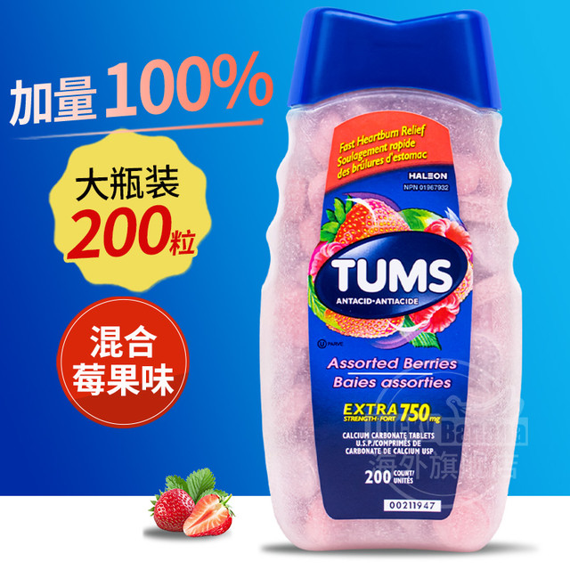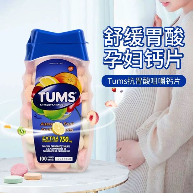 移动端:TUMS 加拿大Tums抗胃酸咀嚼片碳酸钙缓解孕吐反酸烧心中老补钙钙片63.9元淘金币最高抵扣2.13元