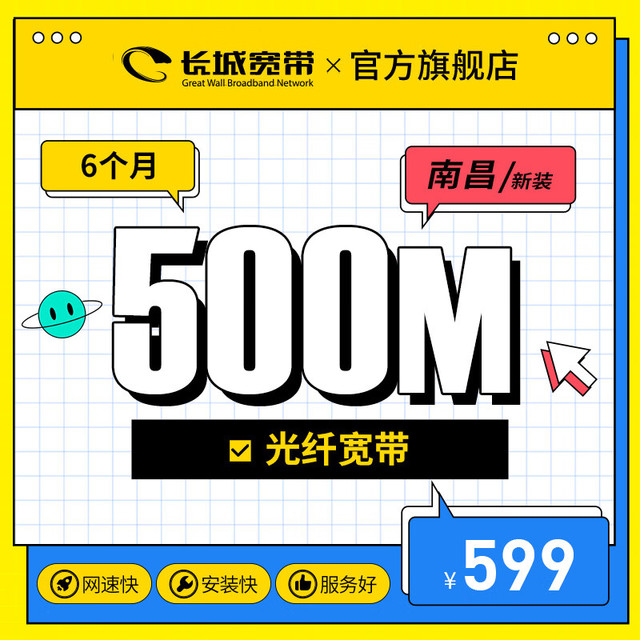 长城宽带 江西南昌500M超宽带免初装费新装办理6-60个月可选 6个月-新装