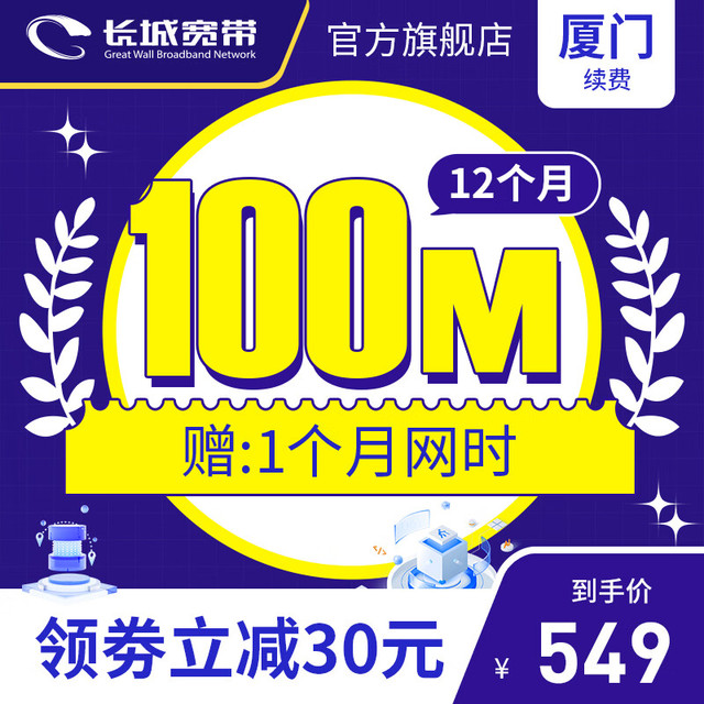 长城宽带 福建厦门 100M宽带12个月 缴费安装宽带办理 焕新钜惠 12个月-续费