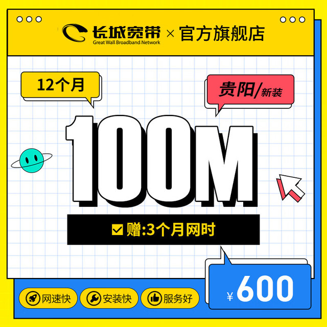 长城宽带 贵州贵阳100M光纤宽带新装缴费办理多套餐报装办宽带 12个月+送3个月网时