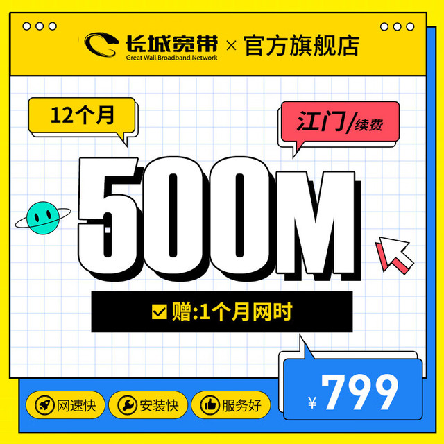 长城宽带 广东江门 500M光纤宽带续费缴费安装办理多套餐报装 12个月+赠1个月