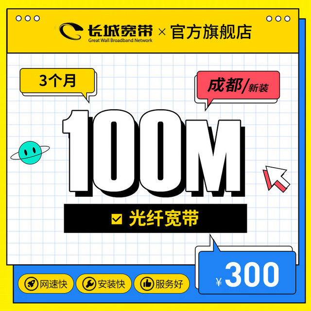 长城宽带 四川成都100M光纤宽带新装缴费办理包年包月办宽带 3个月