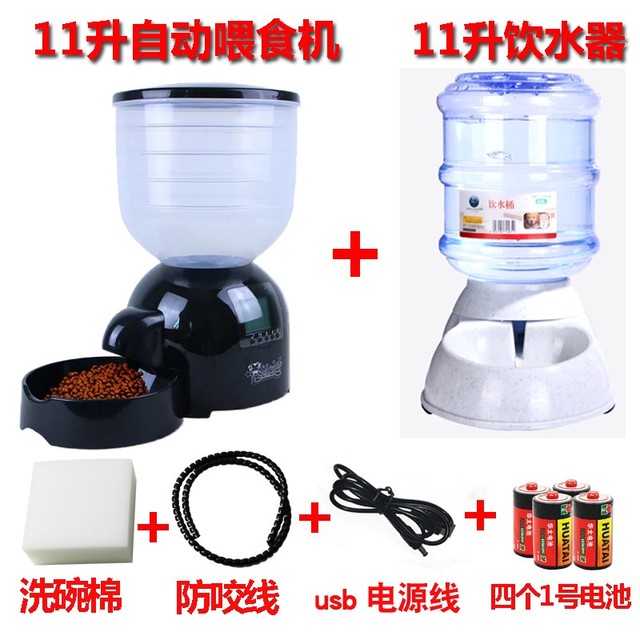 Qpets 丘派斯宠物自动喂食器大型犬投食机自动出粮定时定量录音大食盘大容量 11L自动喂食器+11L饮水机
