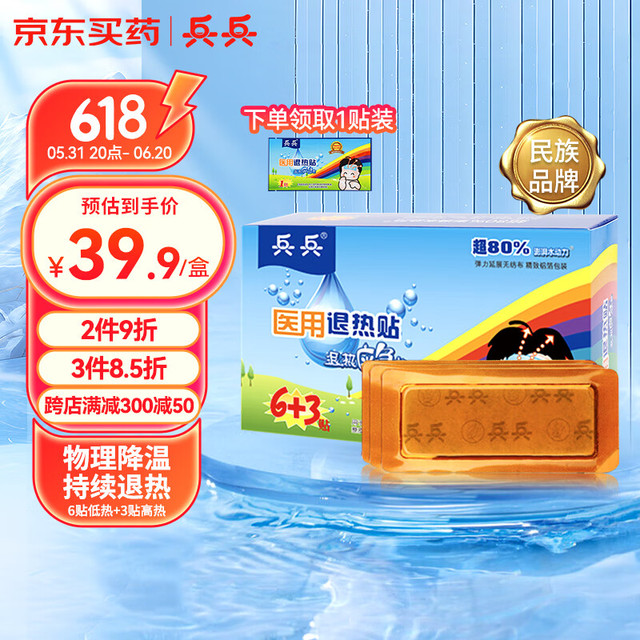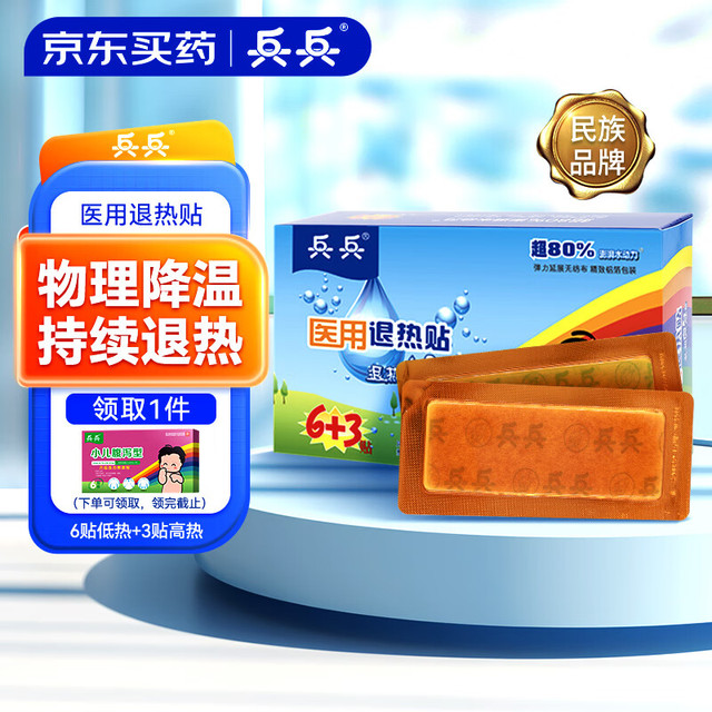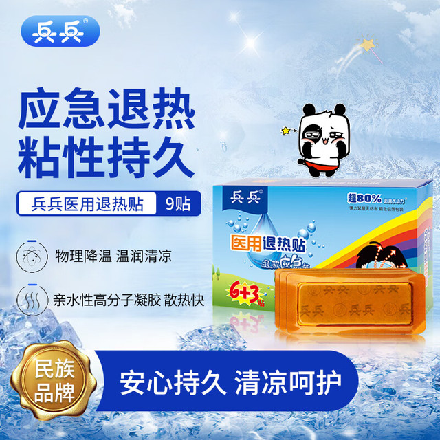 兵兵 退热贴医用 婴儿退烧贴亲肤不含酒精 儿童物理降温贴 婴幼儿家中常备 6+3贴