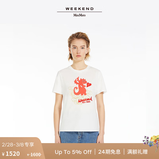 Weekend Max Mara 2024早春新品女装棉质印花T恤5971064106 白色 S
